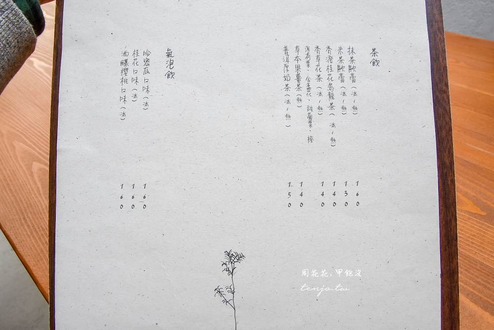 飲料有義式咖啡、手沖咖啡、茶飲、氣泡飲,特別的是有幾款創意特調,和結合古早味意象的米茶歐蕾等飲品