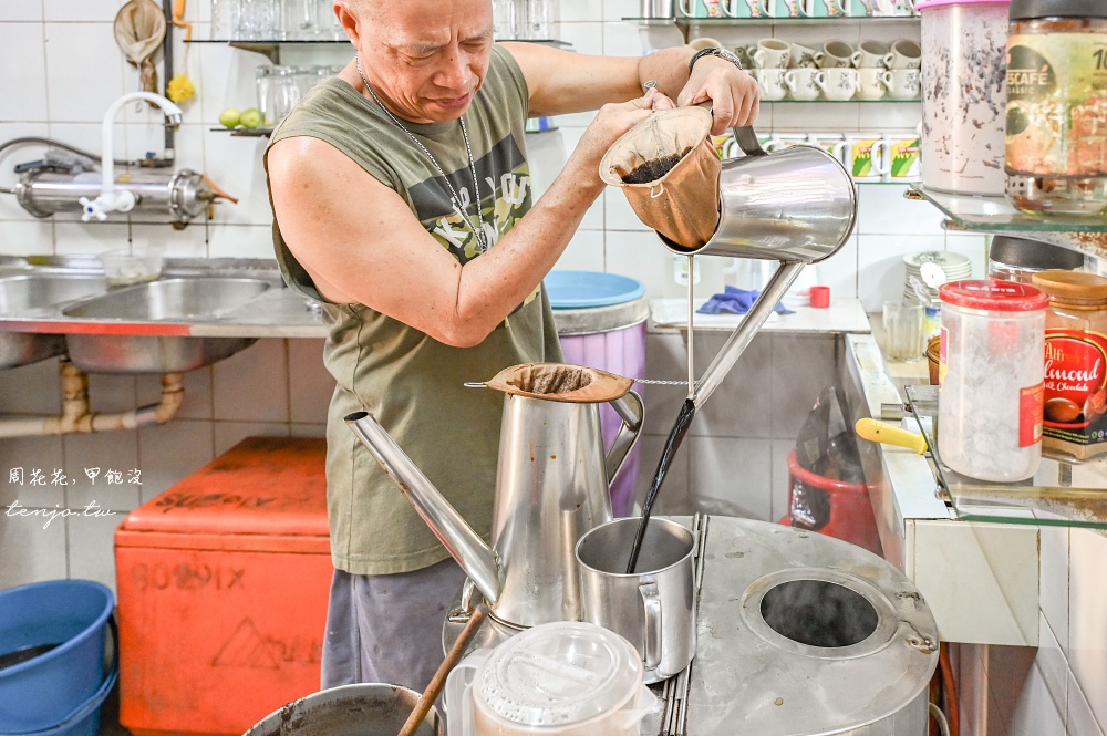 馬來西亞咖啡老店都是用這種大壺沖咖啡,從老闆行雲流水的架勢就知道是真功夫