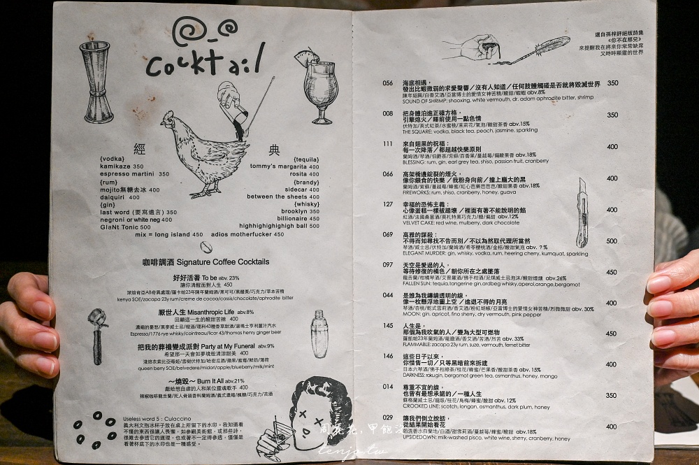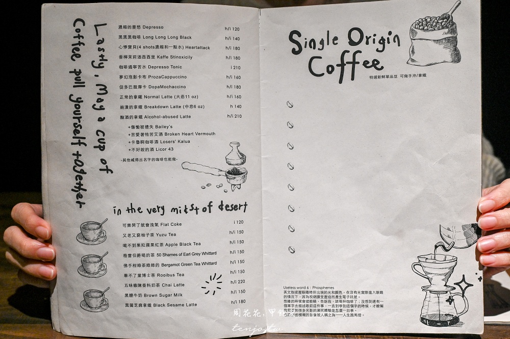 有趣的是《厭世會社》菜單設計非常用心,光是菜品敘述就讓我們看上好久,可見老闆絕對是個有趣的人