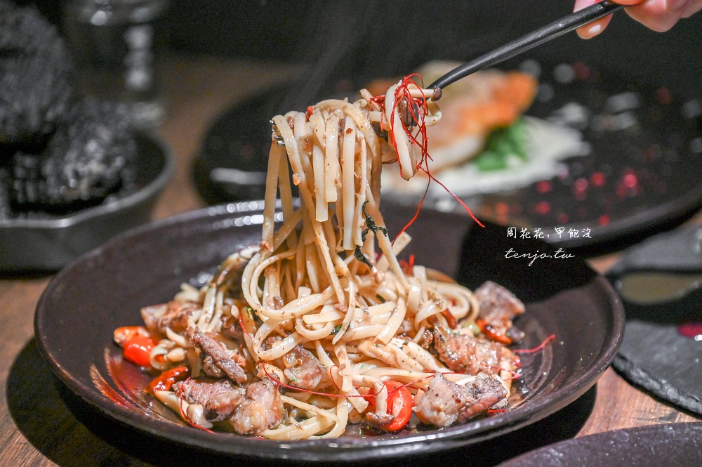 這是一道以客家鹹豬肉為主角的混血義大利麵,我覺得很有創意也蠻好吃的