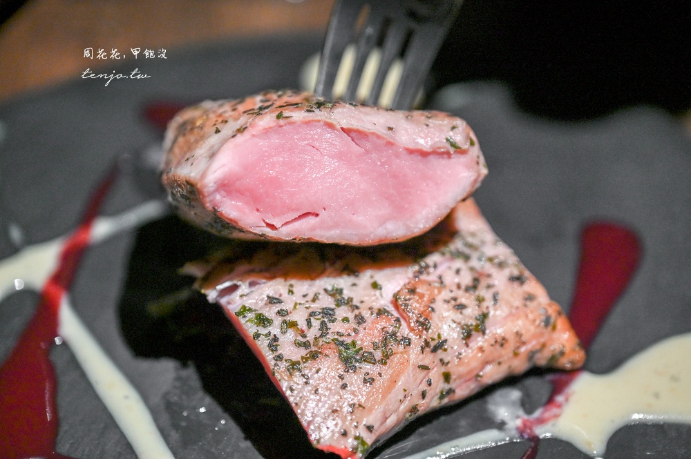從切面的粉紅色澤、多汁水感,就能想見這道豬肉料理口感會有多嫩了吧