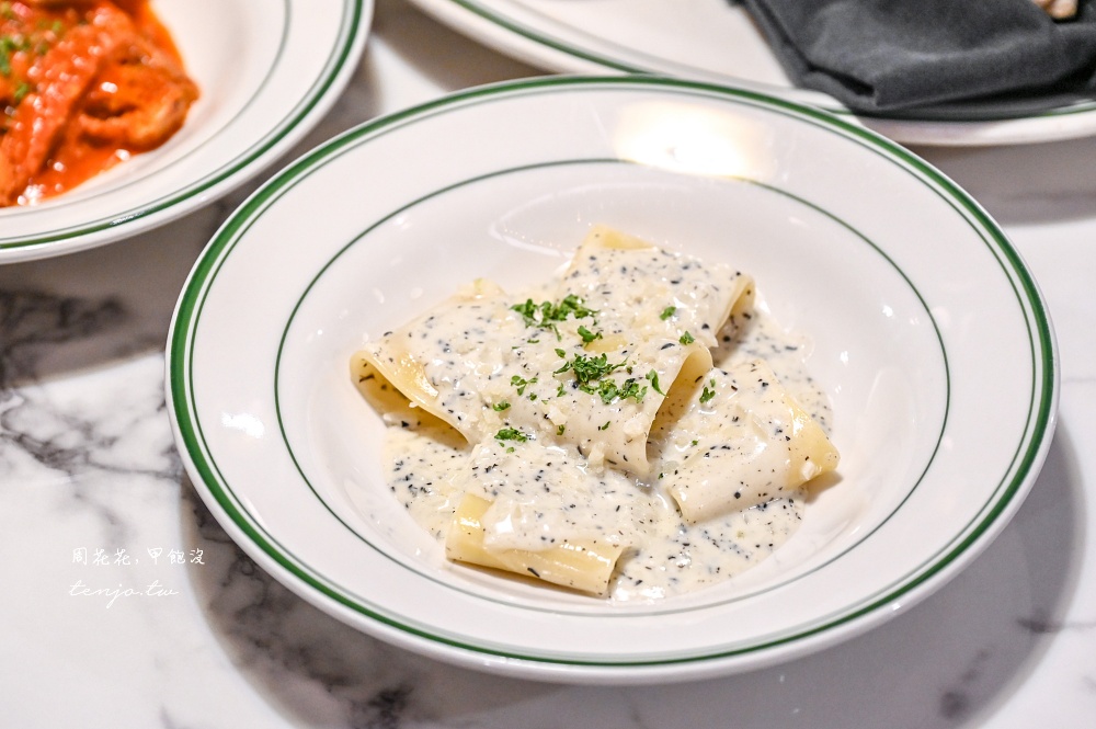 大水管型麵體有著Q彈有嚼勁的口感,與義式松露奶油醬汁的組合也很合拍