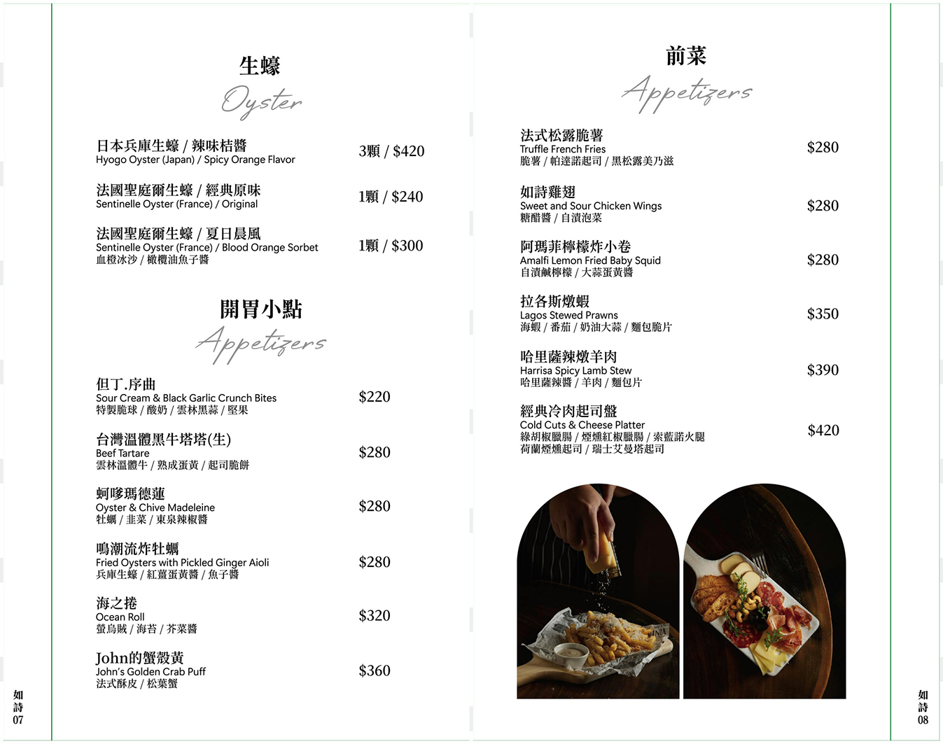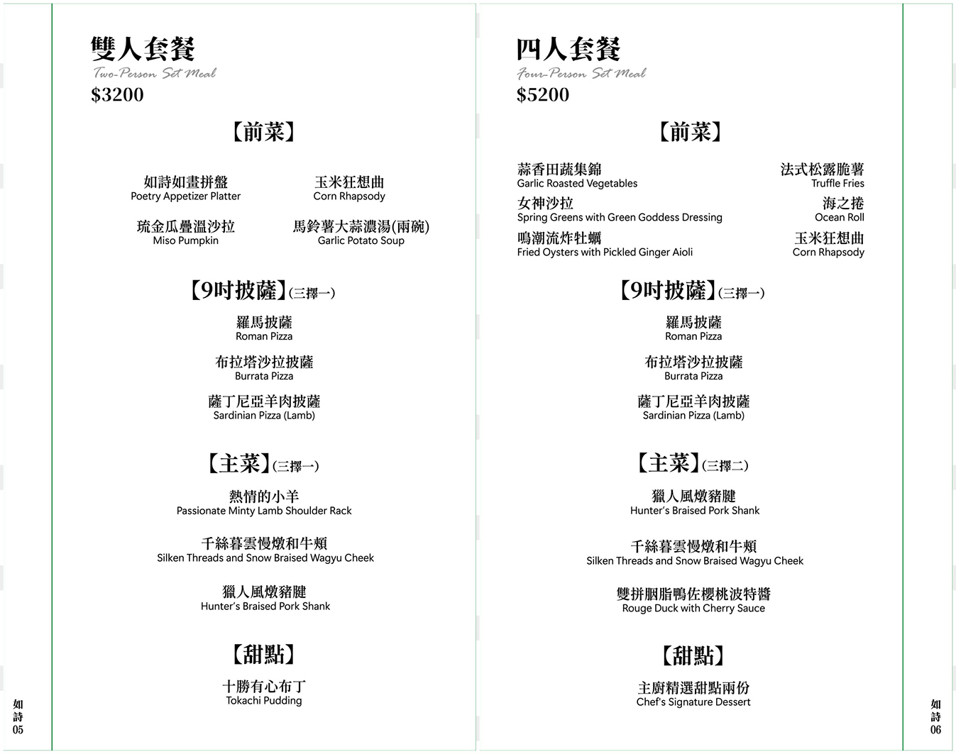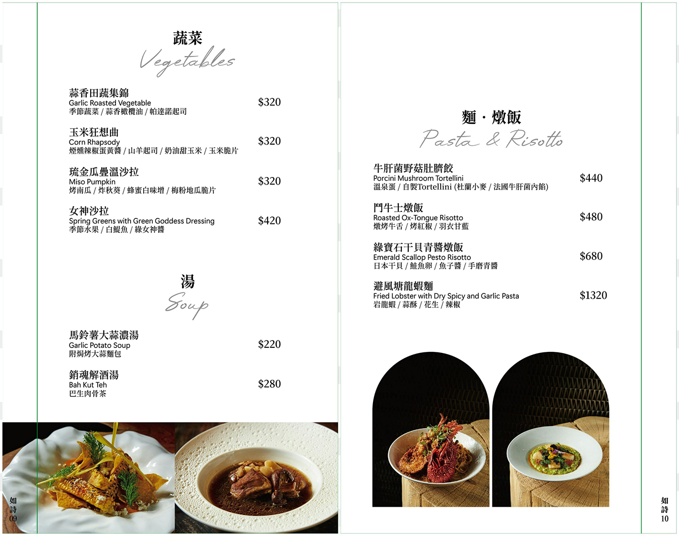 而是我們是晚上來的,所以請參考《Poetry 如詩》的晚餐菜單