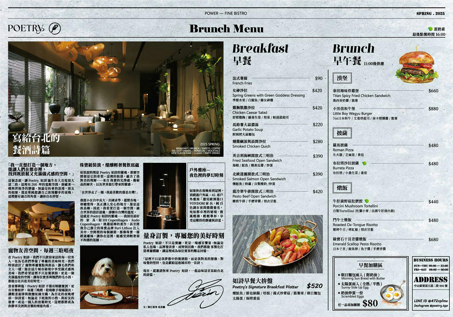 環境好、餐點佳、交通方便都是《Poetry 如詩》推薦原因,寵物友善、有包廂這兩點又更加分啦