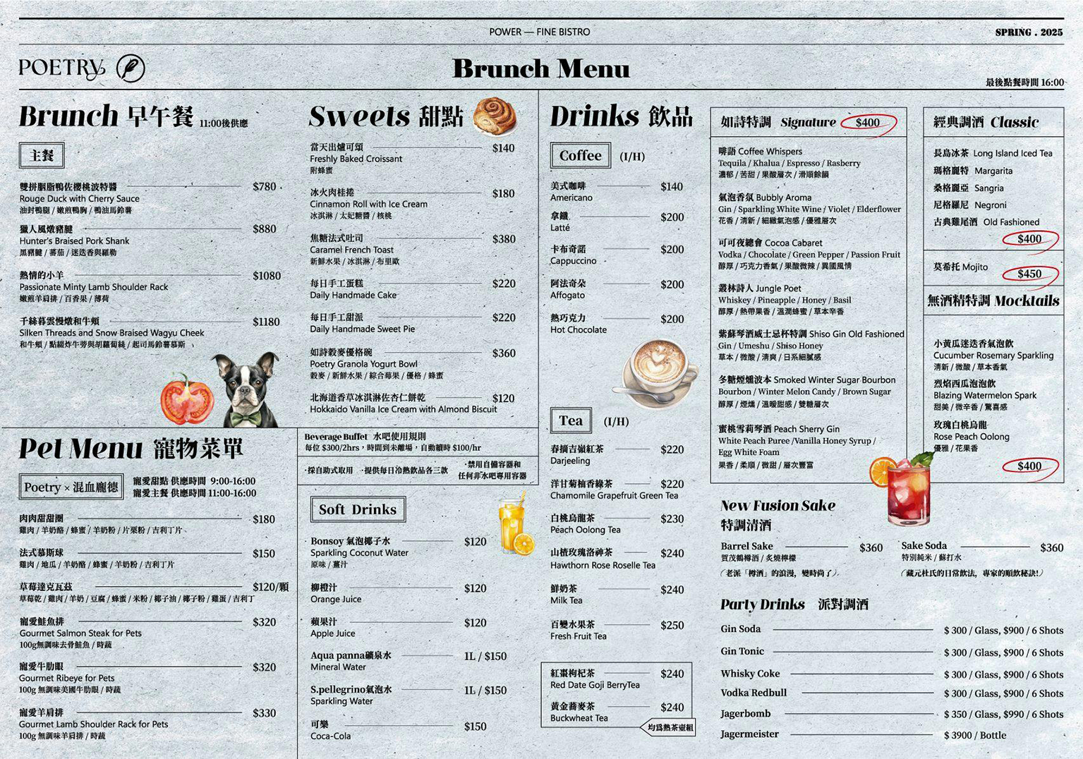 前面有提到《Poetry 如詩》是一間寵物友善餐廳,店內菜單甚至備有寵物餐唷(禁帶寵物外食)