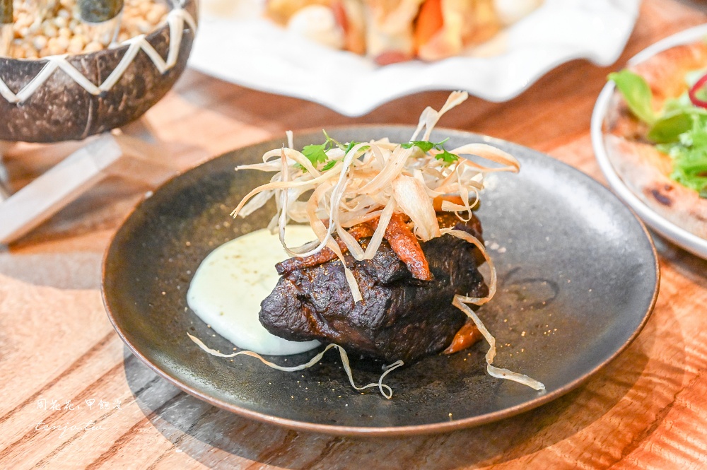 料理製作融合中式魯肉、西式紅酒燉牛頰雙重精髓,先是低溫慢燉再以大火炙烤,結合出極品美味