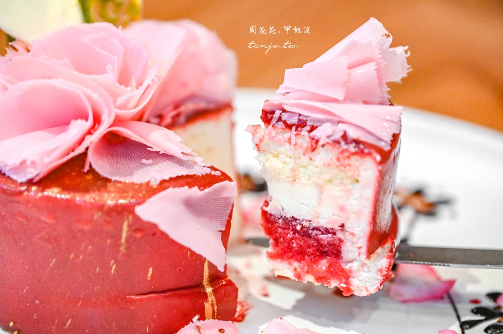 蛋糕內餡為荔枝慕斯、玫瑰慕斯、覆盆莓庫里,組合出酸酸甜甜好味道