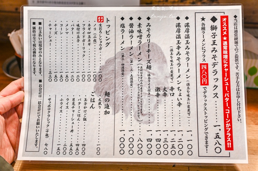 《札幌拉麵獅子王》菜單如下,內用低消一席一碗拉麵是基本禮貌