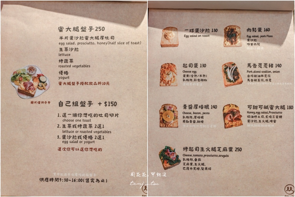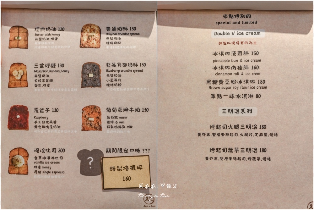 內用菜單可以吃到更豐富的吐司料理,價格有因為台北物價而訂高一些,但仍在可接受範圍內,因為真的夠好吃大家就願意買單