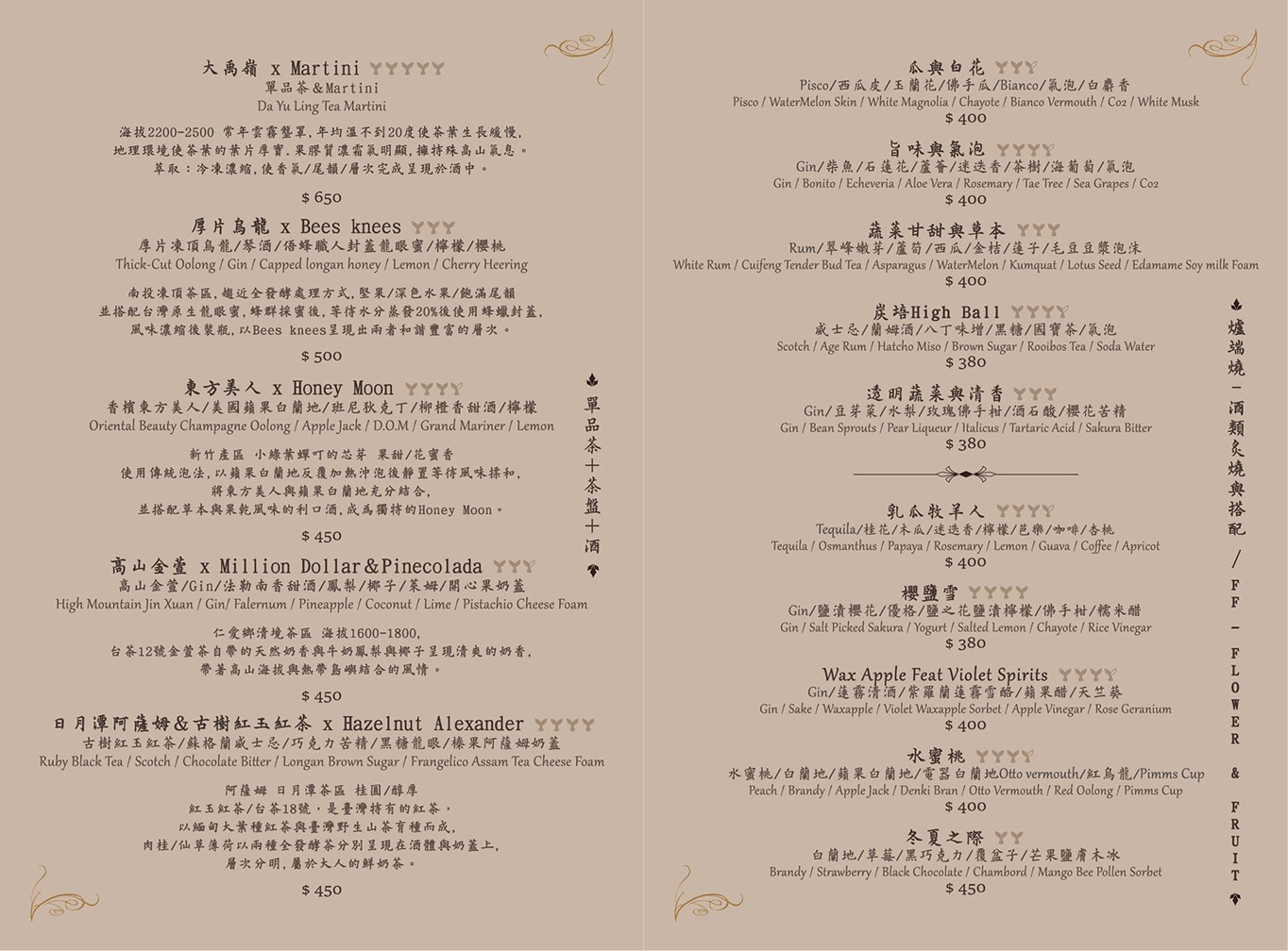 以蘋果白蘭地萃取東方美人茶,搭配草本、果香利口酒,有著較為厚實的酒感