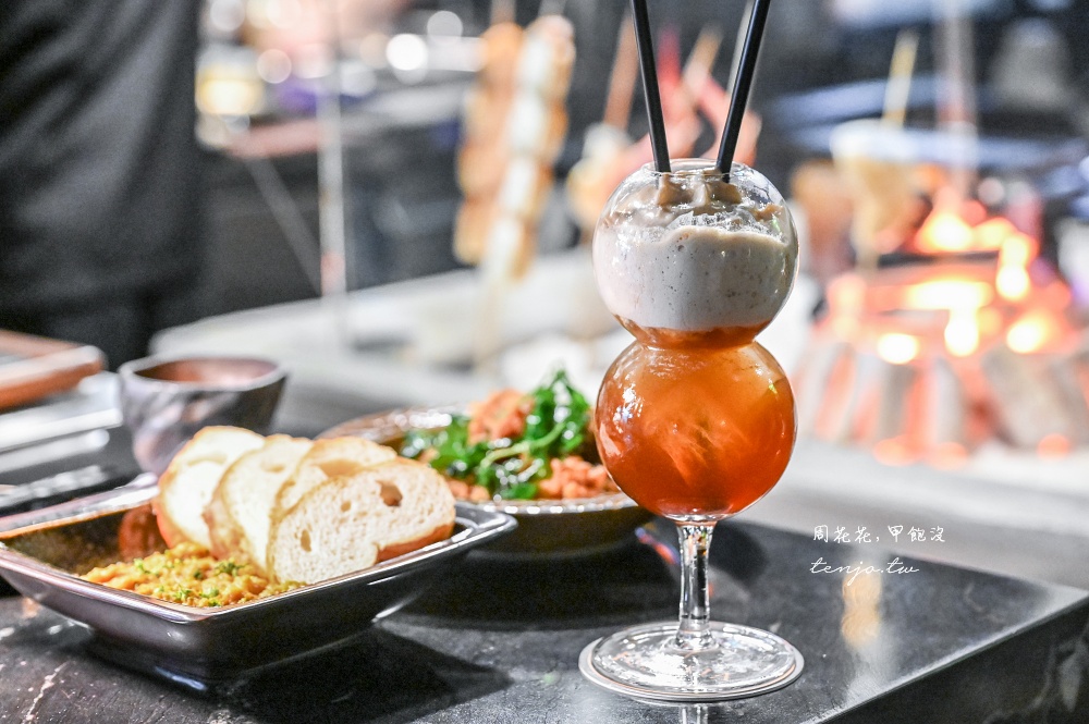 《ROBATA BISTRO 爐端餐酒》是一間將日本傳統爐端燒結合調酒的創意空間,讓用餐跟看表演一樣相當有趣!