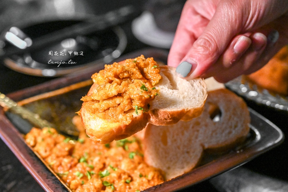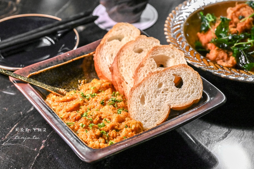 麵包以爐端燒烤至焦香酥脆,可以豪邁搭配滿滿蟹肉一起吃,大口咬下過癮又滿足