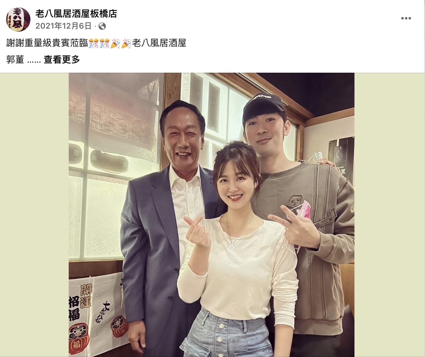 板橋在地開業15年的「老八風居酒屋」,不僅在網路上擁高評價,連郭董都曾經前往聚餐,店家粉絲團上直接曬出和郭董的合照,有圖有真相啦