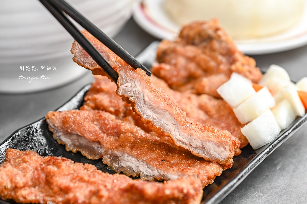 豬肉滋味鮮甜、軟嫩多汁,是很好吃的古早味炸排骨,沾點辣椒更香更對味