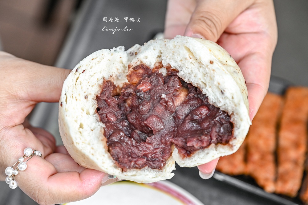豆沙包和日式紅豆包的差異,在於前者是較甜的豆沙,後者為低糖的紅豆餡,我們選了相對健康的後者