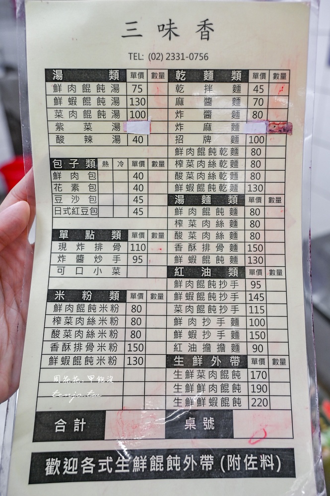 《三味香麵店》菜單如下,小小一間店賣的東西卻很多