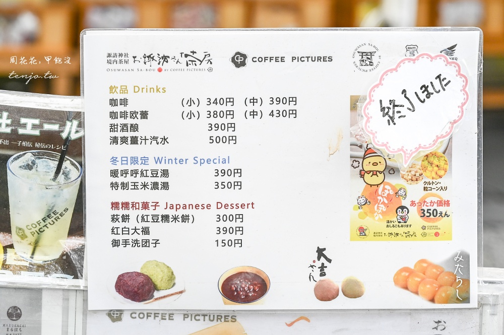 《札幌諏訪神社》還有一間境內茶屋,可以買到咖啡、甜酒和蕨餅、大福、御手洗糰子等美食