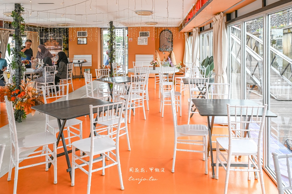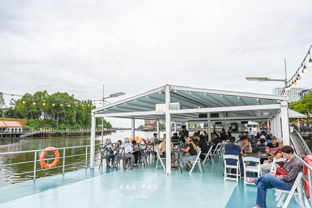 因為二樓座位區可以360度欣賞砂拉越河沿岸景色,所以大家幾乎都會選擇坐在樓上,約17:15就已坐滿,晚來就只能坐在一樓室內座位