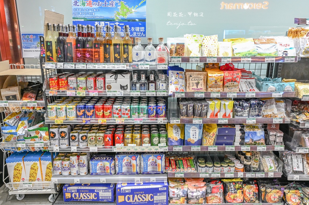 觀光區的《Seicomart》直接把北海道伴手禮擺滿一整排,吃的喝喝全都有