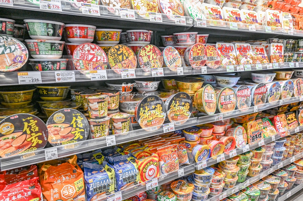 這絕對是我在日本便利商店所看過,品項最齊全的泡面牆了