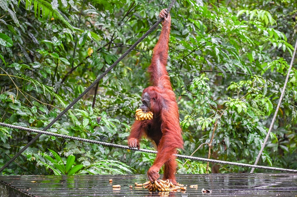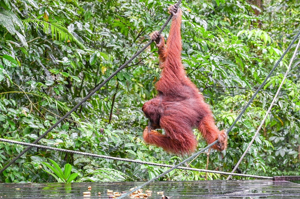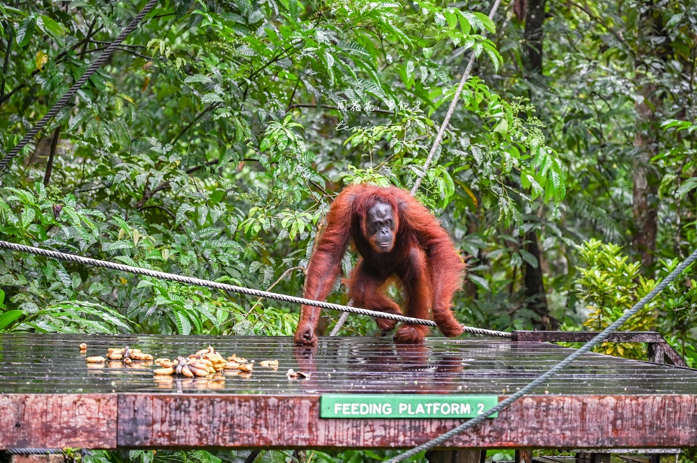 園區位在熱帶雨林中,是砂拉越最大的紅毛猩猩復育中心,一天兩場的餵食活動有機會近距離看到人猿