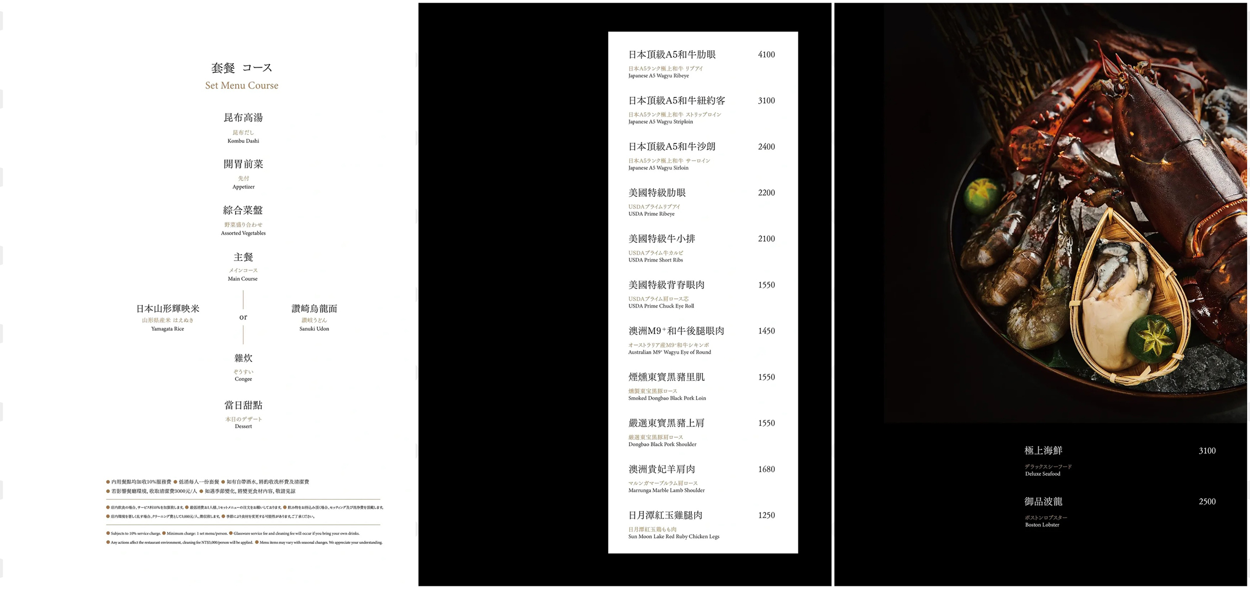 《Shabu Zen》菜單採套餐式設計,全程都有專人桌邊代煮,從前菜到海鮮、肉品、甜點道道都精彩
