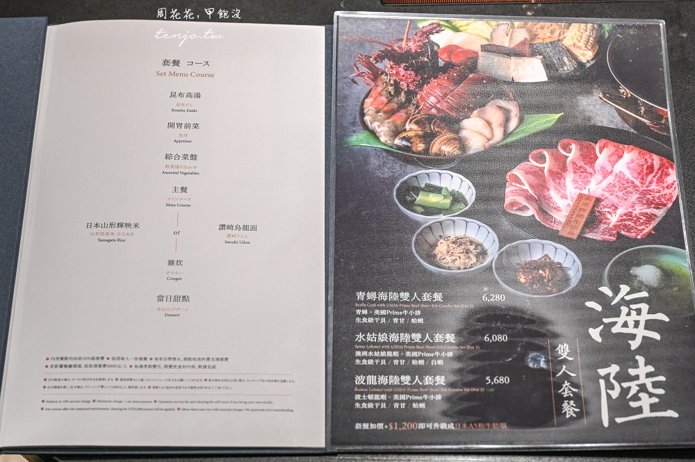《Shabu Zen》菜單如下,menu價格需加收10%服務類,每人低消一份套餐