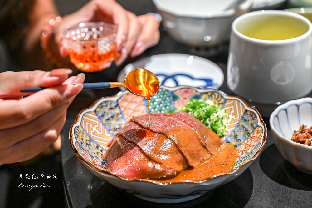 上頭搭配的是炙燒至7分熟的澳洲M9和牛,肉質鮮甜帶有飽滿油香,份量一個人獨享可能會有點多,建議兩人分享一份差不多