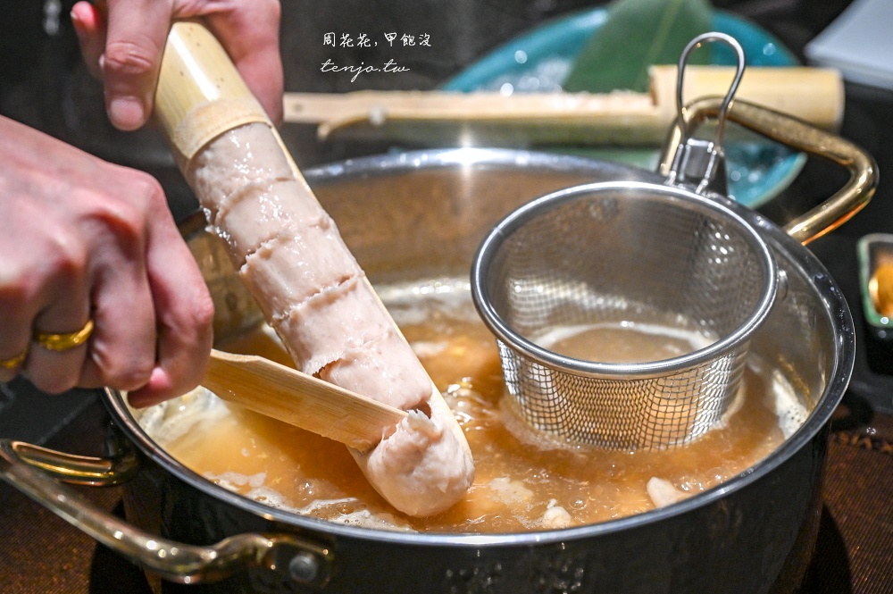 湯底使用昆布、柴魚、蟲草花熬製,並加入日本清酒烹煮
