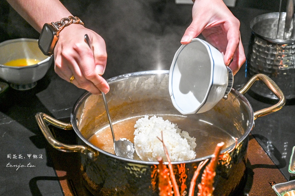 煮過龍蝦等多種海鮮、和牛的湯底,本身的鮮度就非常棒,一定要以雜炊結尾才不會浪費