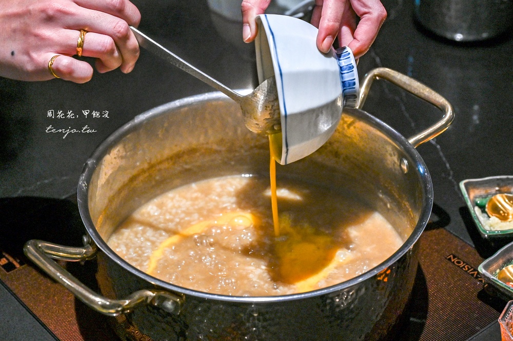 在享用完火鍋饗宴後,最後會再有桌邊煮粥服務