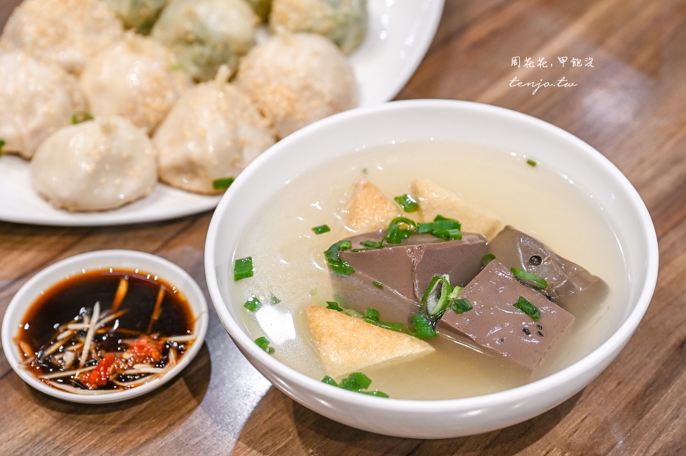 搭配小籠包、蒸餃、燒賣、粽子、湯品、細粉,和酸梅湯、養生甜湯兩種飲品