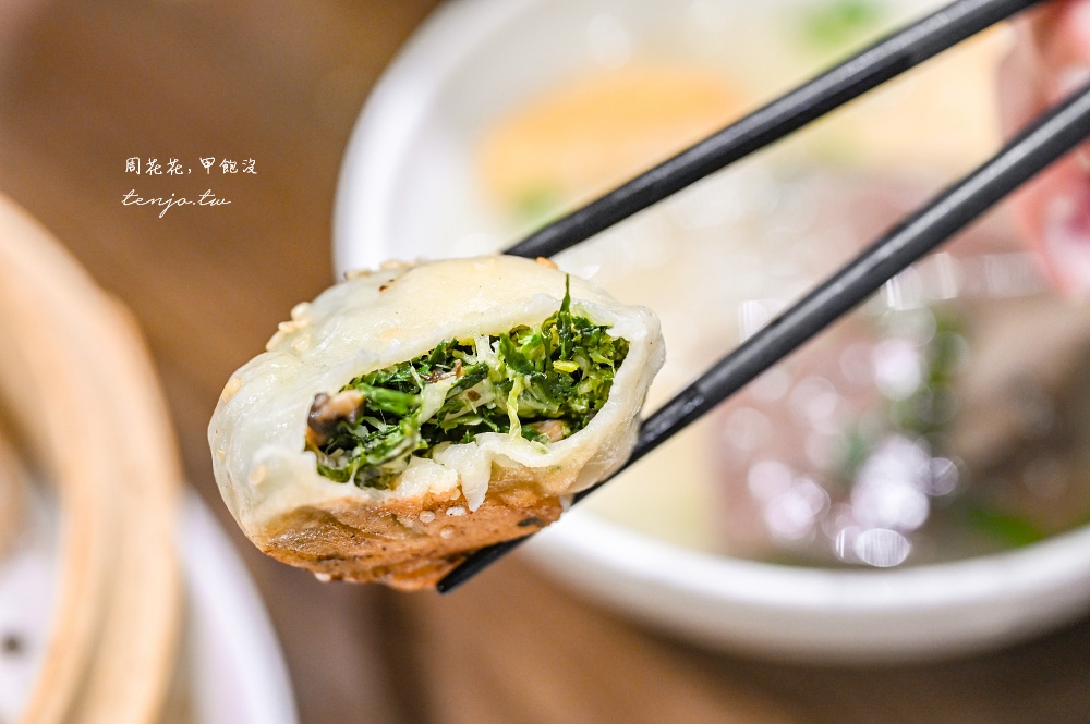 翡翠生煎內餡是以青江菜、豆乾、香菇為主,口感爽脆、滋味清新,是很爽口的好味道;但我私心仍比較喜歡鮮肉生煎包,有肉會噴汁吃起來還是比較過癮