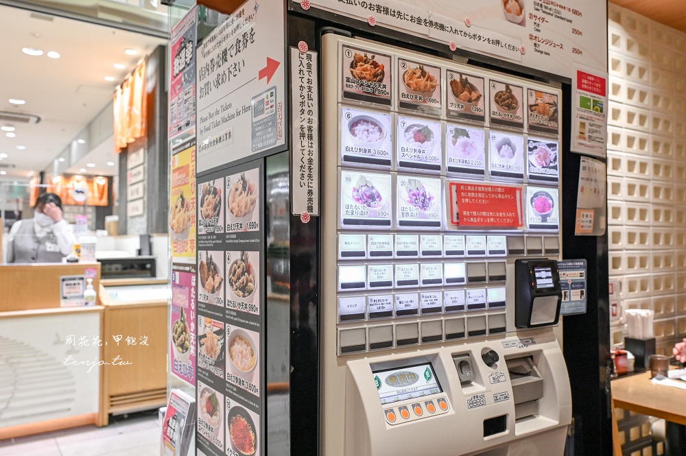 最有名的就是天婦羅蓋飯,有白蝦、鰤魚、螢烏賊幾種,也能直接點最貴的特等天婦羅,每種食材都吃得到