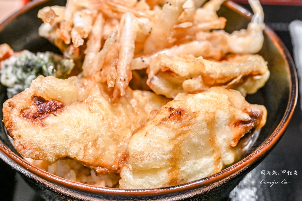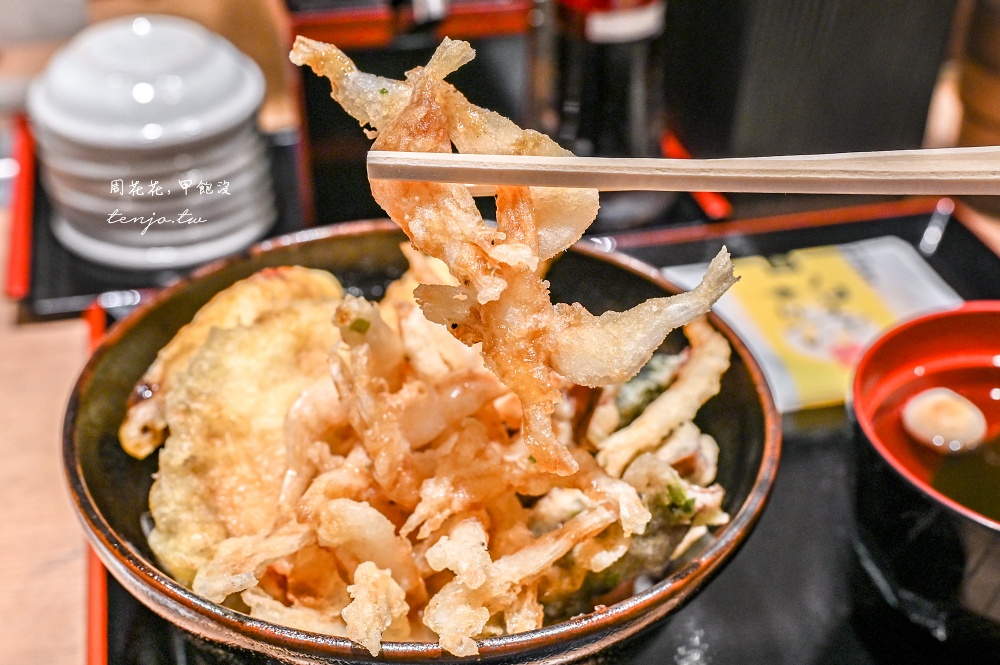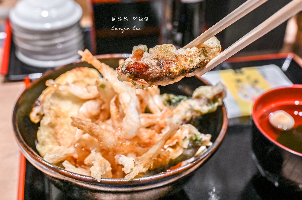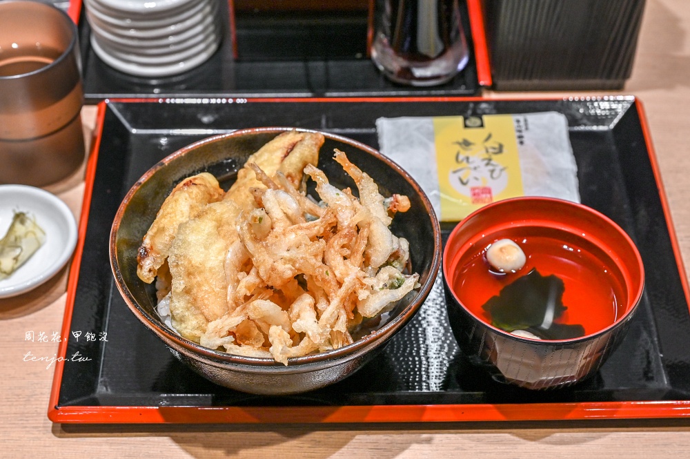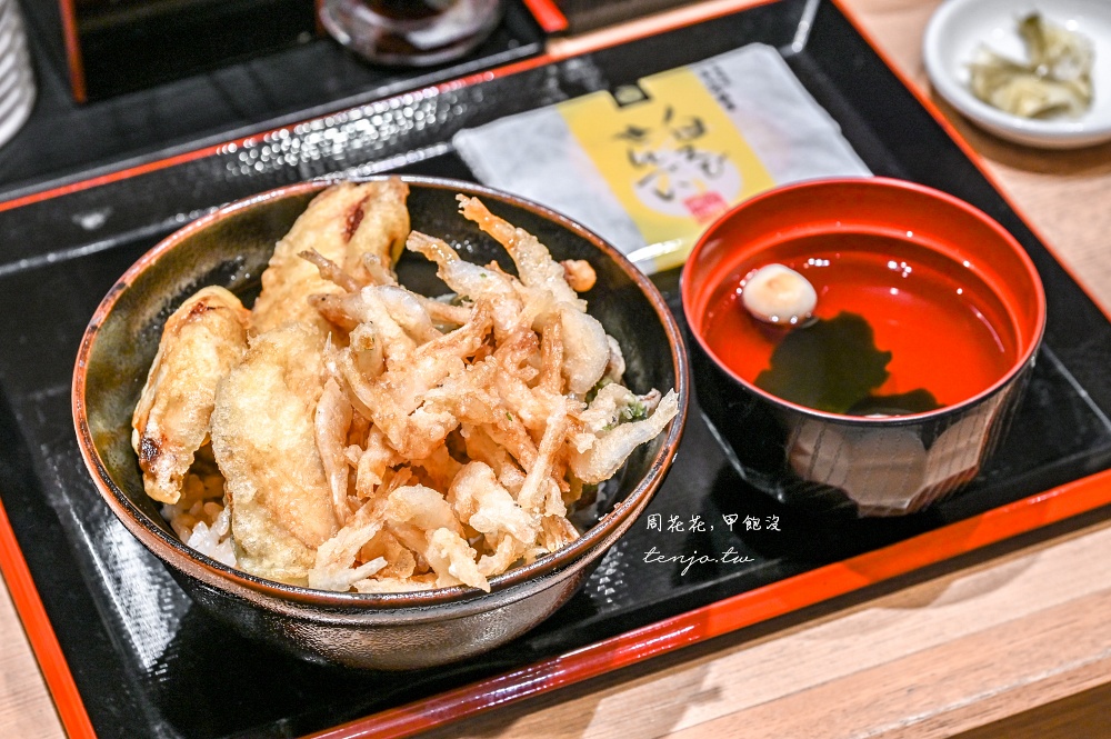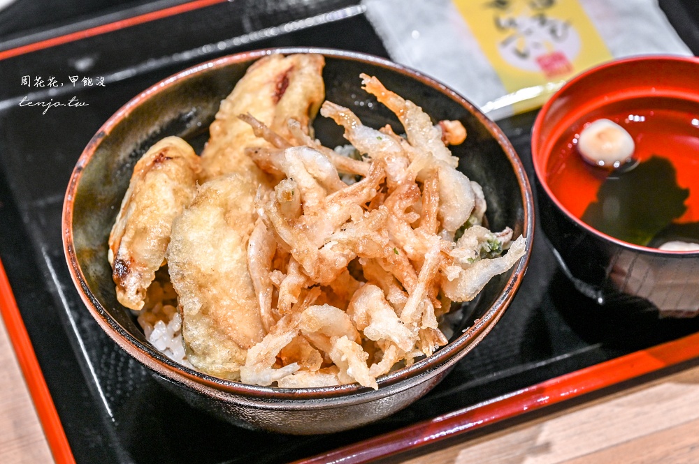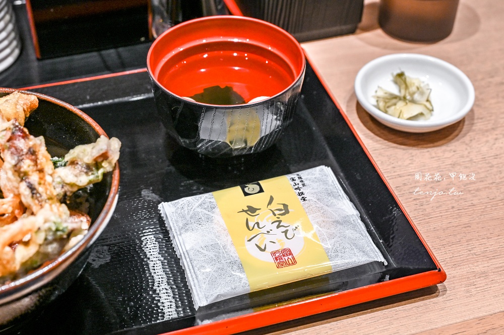 除了一碗天婦羅蓋飯外,皆會附上湯品、白蝦仙貝,吃完飽足感相當夠