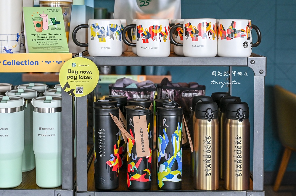 共有馬克杯、保溫瓶兩種版本,不同顏色代表著馬來西亞的每間門市,馬克杯的價格為105令吉,保溫瓶的價格有點忘了,但印象中大約是180令吉左右