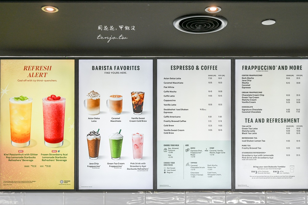 馬來西亞星巴克菜單直接列給大家參考,價格換算成台幣跟台灣差不多