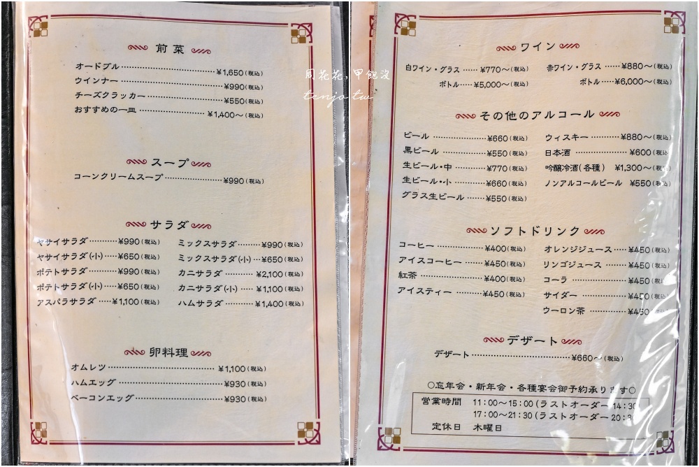 營業時間:11:00 – 15:00 (L.O.14:30)、17:00 – 21:30 (L.O.20:30) *週四公休
