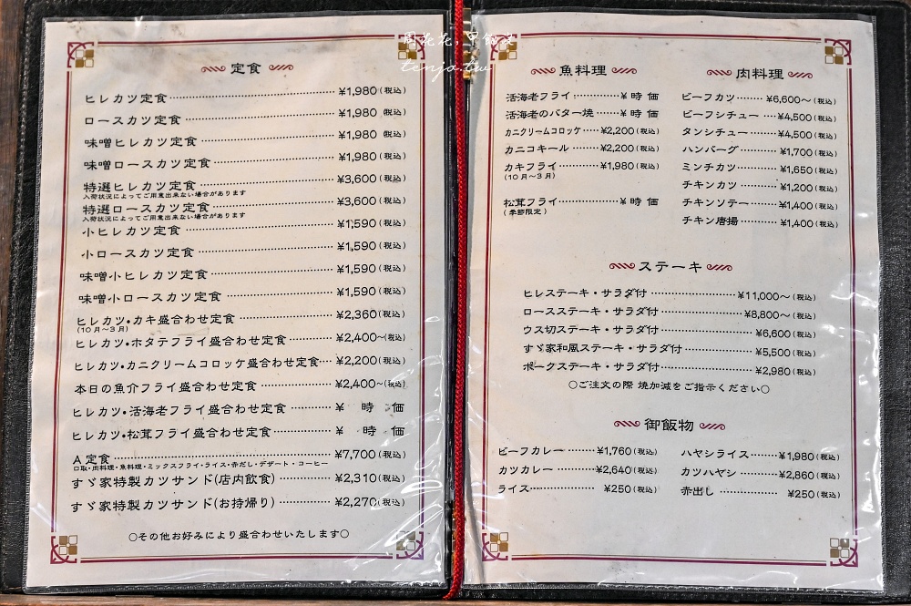 《炸豬排 すゞ家 赤門店》是昭和22年創立的老字號西餐廳,即使是高評價老店,菜單價格仍舊很平價呢