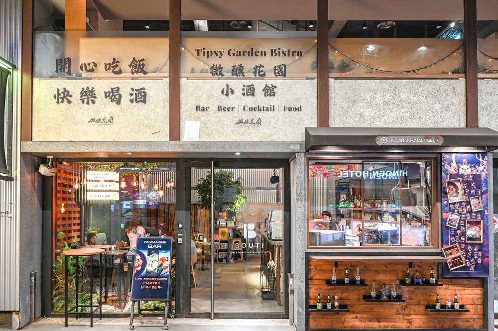而《微醺花園小酒館》則是以小酒館的形式為主,悠閒氣氛更適合放鬆心情、小酌聊天,不少情侶會選擇來這約會,也是上班族下班後相約喝酒的好去處