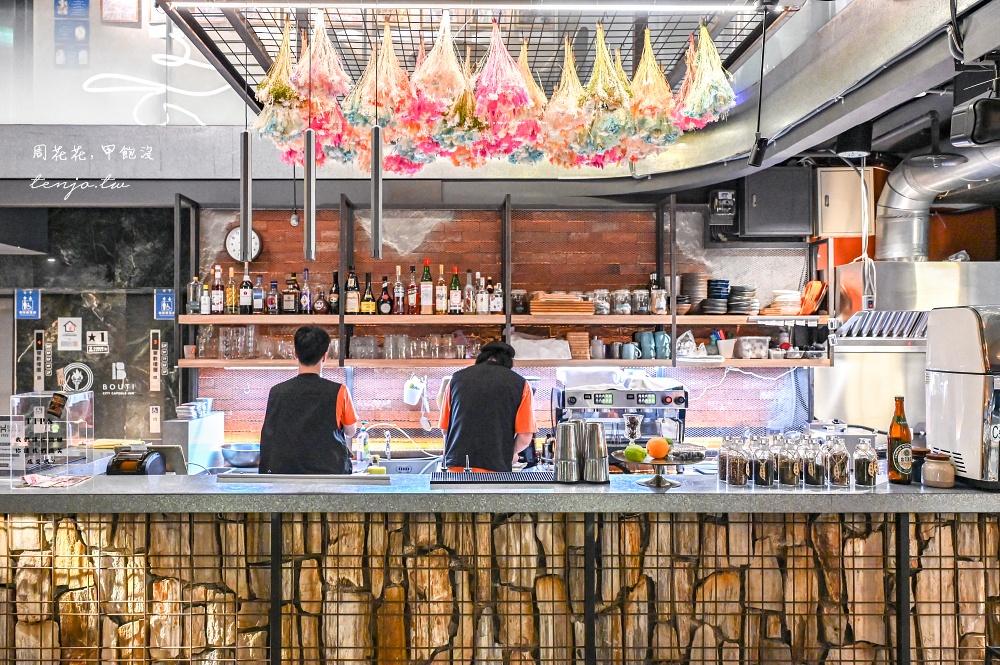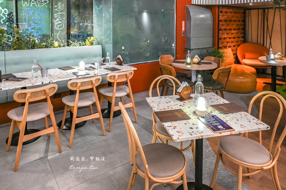 搭配現代風格的工業風裝潢,點綴彩色花卉、綠色植物,彷彿就像是來到城市花園一樣,吃飯喜歡拍照打卡的人,可以盡情在這裡拍漂亮的網美照