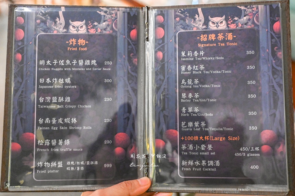 餐點有台灣美食、主廚特餐、炸物等,都是很適合下酒的菜色,要吃飽或是吃巧都沒問題