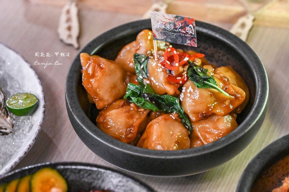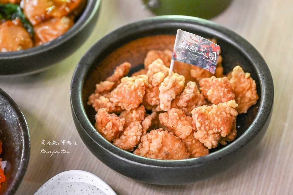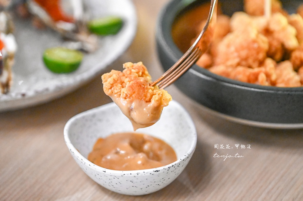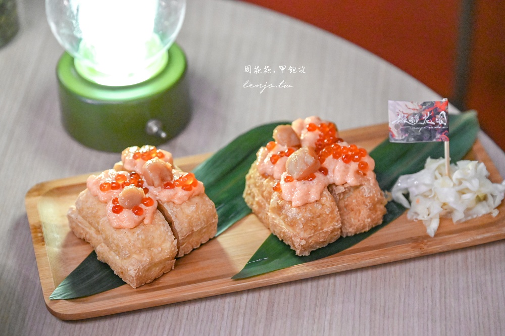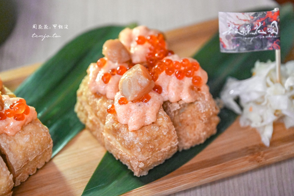 臭豆腐炸得外酥內嫩,一口咬下就能感受迷人的臭香,與明太子醬、鮭魚卵、小干貝的組合竟也意外合拍,讓我們一塊接一塊完全停不下來