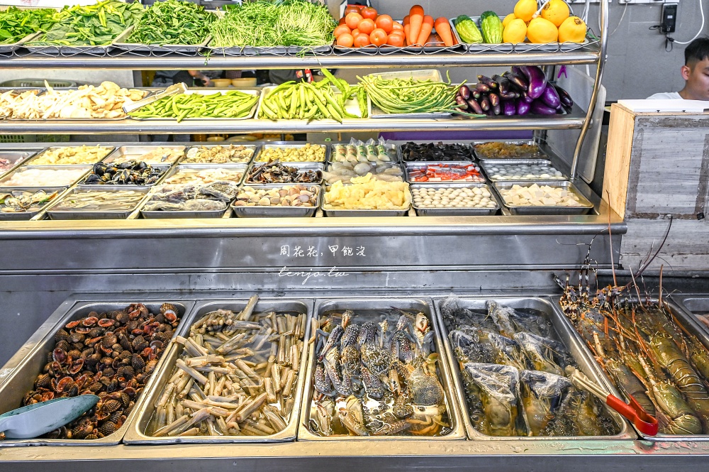 各式海鮮、時令蔬菜等食材,都整潔擺放直接展示出來,可見店家對於新鮮度的自信,看起來賣相皆很可口