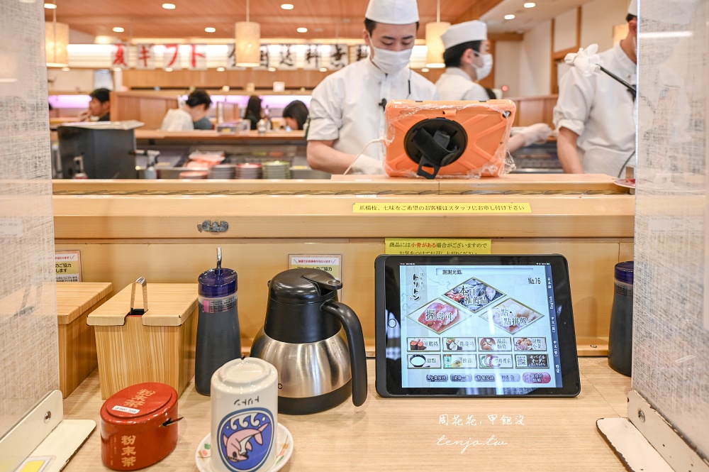 現在迴轉壽司台上已經沒有壽司在轉,都是以平板點餐送餐,新鮮度、衛生度才會最佳