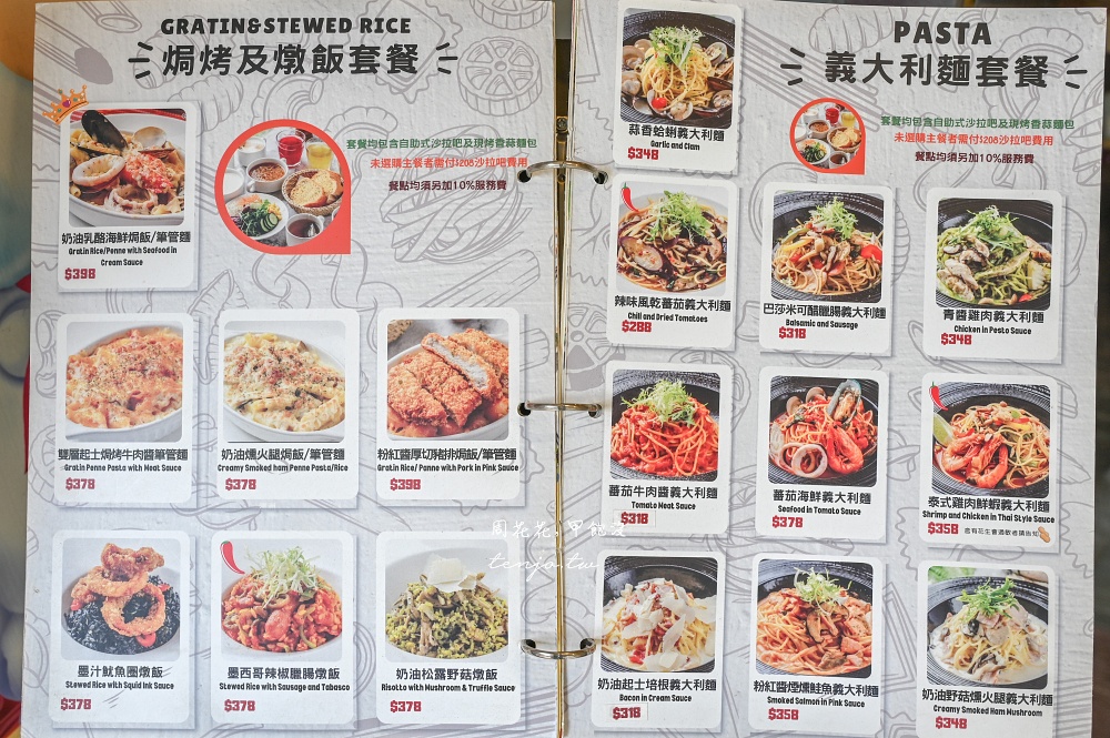 《威尼斯義大利餐廳》菜單如下,menu價格需加收一成服務費