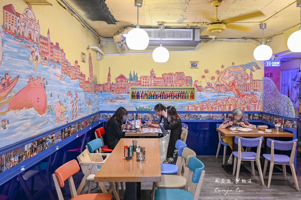 牆上塗滿水都威尼斯的彩繪,有著可愛童趣,同時也是家親子友善餐廳