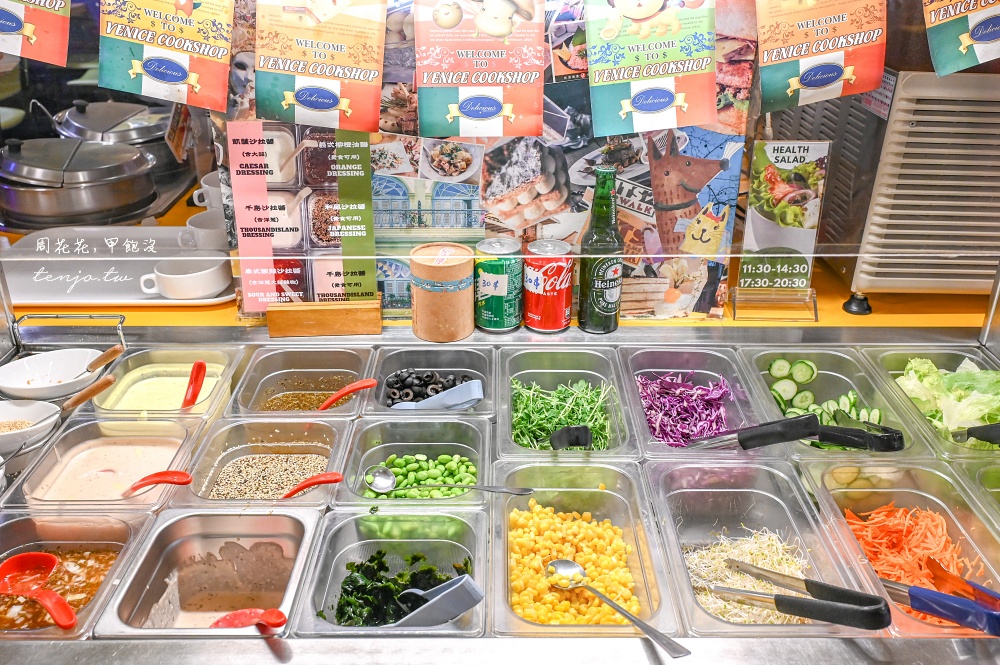 《威尼斯義大利餐廳》菜單上的餐點價格,皆包含每人自助吧吃到飽的費用
