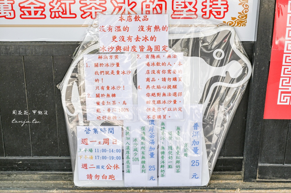 《萬金紅茶冰》菜單飲料全部都是黃金比例,無法客製化調整,出杯的全是老闆自信之作,我覺得很好喝啦