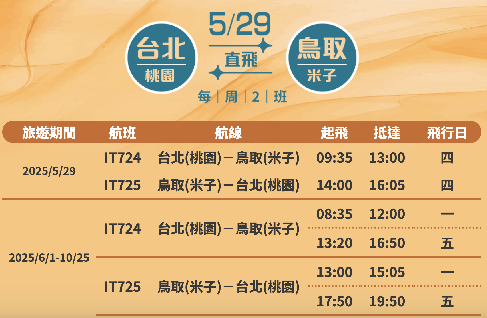 台灣虎航於2025.5.29獨家開航《米子鬼太郎機場》,每週一、五從台灣直飛米子,實在是山陰旅行一大福音
